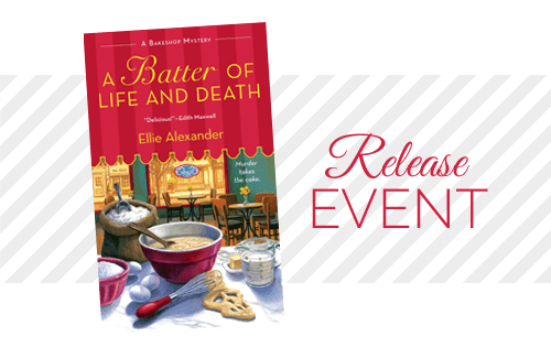 Today we are excited to announce the release of A Batter of Life and Death by Ellie Alexander! This is the second book in the Bakeshop Mystery series and is now available for sale!