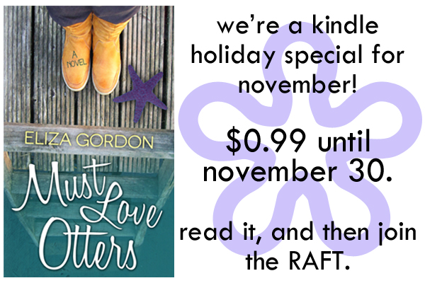 Must Love Otters by Eliza Gordon is an adult romantic comedy that is on sale on Amazon for only $0.99 until November 30th. Hollie Porter Builds a Raft, the second book, is now available for sale as well. It’s a great time to start the series! To celebrate the sale we’re also giving away a $25 Amazon gift card & audiobook CD of Must Love Otters!