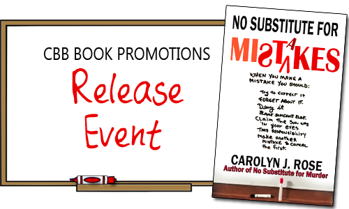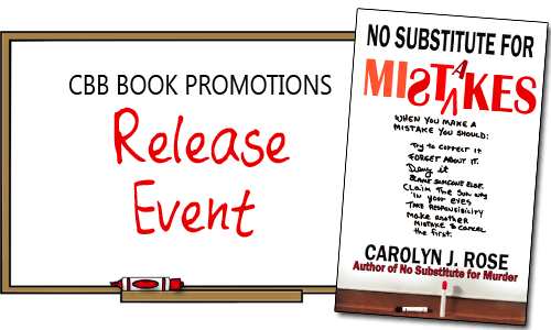 I’m excited to welcome you to the release event for No Substitute for Mistakes by Carolyn J. Rose. This is the fifth book in the Subbing isn’t for Sissies series and is now available for sale! This is a cozy mystery series and the first three books are only .99 cents!