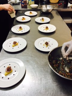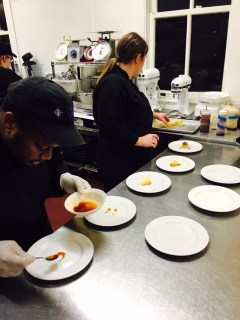 Another thing that I do when I’m working on a book is interview pastry chefs. I’ve learned so many tricks of the trade, quick tips for baking, and even gotten a few new ideas on how to bump someone off in a bakeshop from chatting with chefs. I’ve been so impressed to watch how they orchestrate a blur of staff, a frenzy of chopping knives, and plate after plate of styled food. One of the most amazing experiences that I’ve had behind the scenes in a professional kitchen was at the NW Culinary Institute where I spent an evening watching chefs-in-training at work as they prepared a six course meal that almost too pretty to eat and tasted even better.